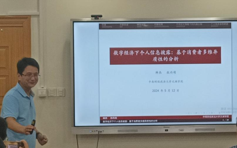 中南财经政法大学文澜学院教授帅杰作了题为“数字经济下个人信息披露——基于消费者多维异质性的分析”的报告。报告从消费者信息多维性出发,建立动态空间竞争模型,通过梳理大数据技术发展以来企业定价策略的变化,研究企业杀熟动机及其对于消费者福利和社会福利的影响,分析市场演变的动态过程。研究发现:随着企业数字化能力的不断增强,可利用的消费者信息由单维转向多维,市场均衡结果将呈现非线性变化,竞争程度先增强后减弱,企业利润先下降后上升,消费者福利先增加后减少。