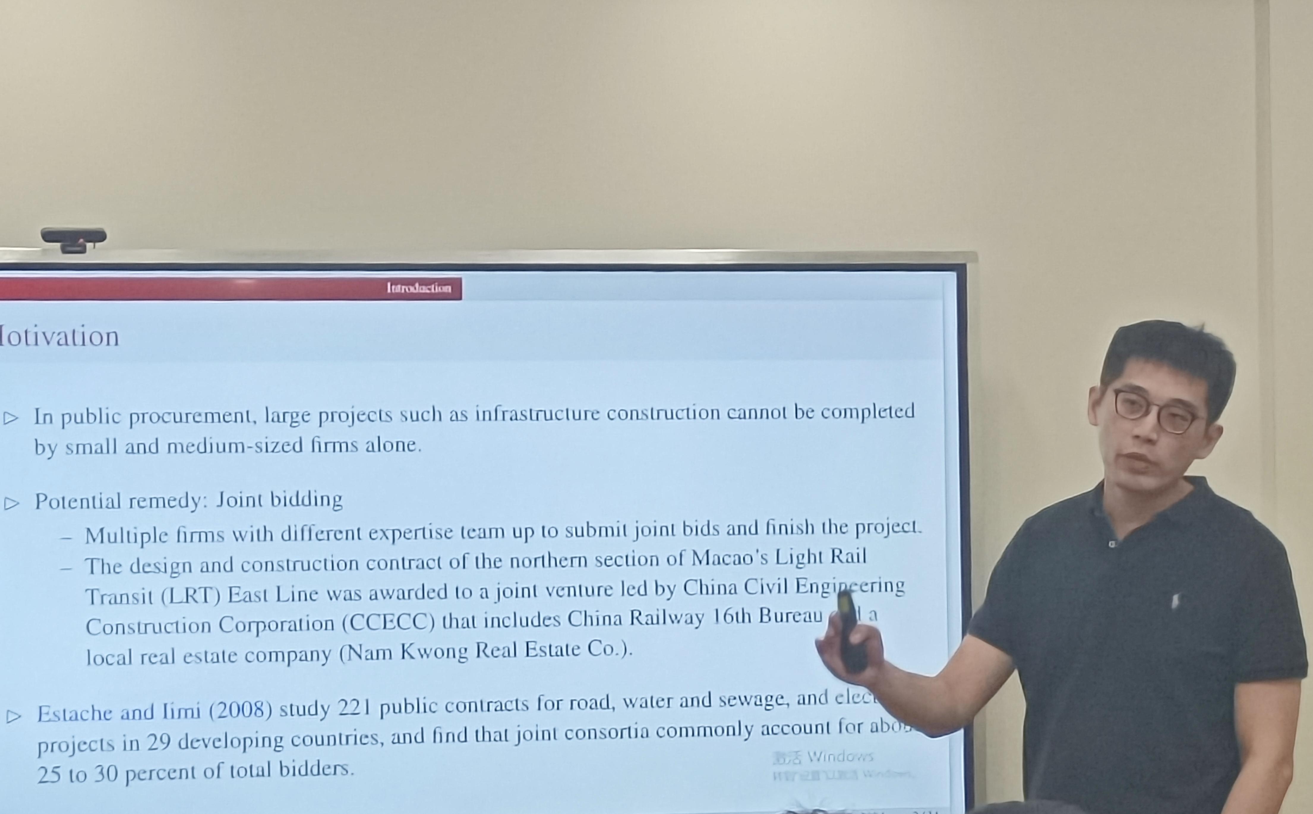 北京大学经济学院长聘副教授吴泽南作了题为“Joint Bidding and Information Frictions”的报告。报告指出在一些企业必须合作完成项目的公共采购中,允许互补企业联合投标是促进竞争的自然方式。研究将联合投标与VCG拍卖进行比较,其中VCG拍卖允许互补的公司在不形成联盟的情况下独立投标。研究发现在没有信息摩擦的情况下,联合招标优于VCG拍卖,能够以较低的采购价格实现充分的配置效率。然而,由于企业的非分类匹配或联盟内的战略行为,信息摩擦会阻碍联合招标,使其在配置效率和采购价格方面比VCG拍卖表现更差。
