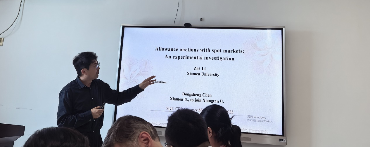 厦门大学李智教授作了题为《Allowance Auctions with Spot Markets: An Experimental Investigation》的学术报告,运用实验经济学方法对比了碳排放权分配问题中统一价格拍卖(UPA)和收益中性寄售拍卖(CA)两种机制设计的市场表现。研究设置100%和60%两种配额拍卖比例,并区分高排放与低排放两类企业。实验发现:(1)无现货市场时,CA机制下配额过剩企业(净卖方)会抬高报价,高排放企业存在虚报需求行为,导致结算价高于UPA且效率更低;(2)引入连续双向拍卖的现货市场后,两种拍卖的初级市场价格均显著提升,其中100%配额拍卖时UPA价格明显高于CA;(3)拍卖价格成为现货市场基准,带动交易价格上行,现货市场有效缓解了CA的低效问题;(4)100%拍卖价格显著低于60%拍卖,且高排放企业报价普遍低于低排放企业。该研究为碳市场机制设计提供了重要参考,表明寄售拍卖需配合现货市场才能实现最优效率。