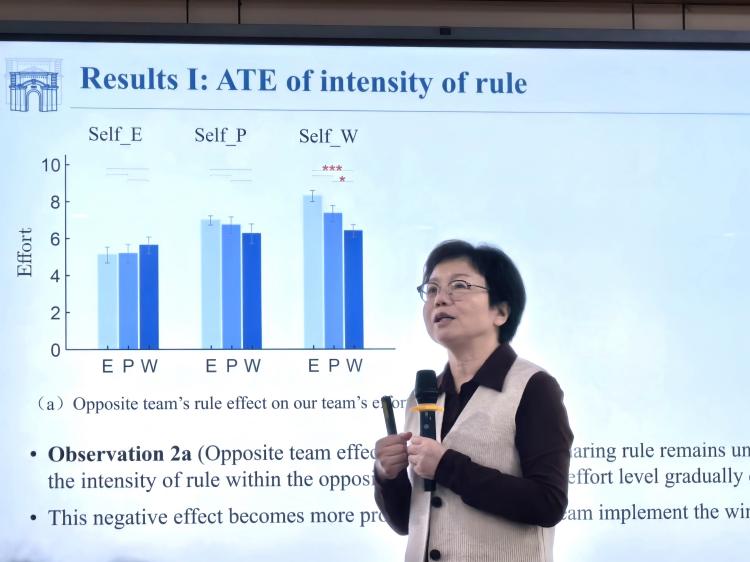 许教授指出,近年来,全球竞争呈不断加剧的态势。许教授以团队间能力存在一定程度的差异为前提,探究能力弱势的团队能否利用更强的激励制度实现努力水平对优势团队的反超。该实验研究共设置高低2种能力水平,平均分配、比例分配和赢者通吃3种团队内奖金分配制度,采取团队间分配制度对称和不对称的6种组合,其中低能力团队的制度始终不比高能力团队的制度弱。理论分析显示:(1)随着分配制度的对称强化,高能力团队会持续提高努力水平,而低能力团队则在短暂的提升后转而下降;(2)在能力弱势的团队采取更强的激励制度时,在本实验参数下,能力弱势团队均能实现努力水平的反超。实验结果表明,随着分配制度的对称强化,高能力团队的努力水平不断上升而低能力团队的努力水平保持不变;但是,在制度非对称的情况下,低能力团队的努力水平仅在对方采取平均分配而自己采取赢者通吃制度时才反超了高能力团队,进一步的分析表明,高能力团队的过度努力使得“平均-比例”以及“比例-赢者通吃”的组合下低能力团队无法实现努力水平的反超。我们的研究为团队竞争中的能力培养、人才引进和制度建设提供了启示。