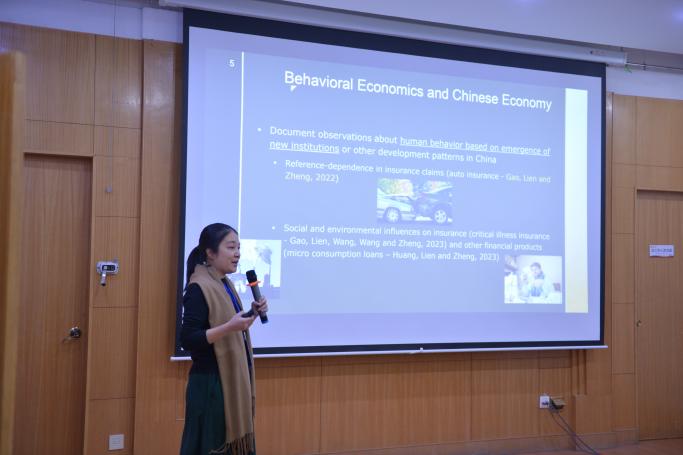 LIEN Jaimie Wei-Hung教授主讲,主题为“行为经济学与中国经济”。Lien教授从行为经济学视角出发,探讨中国特定制度与环境下的经济行为及其经济含义。首先,以中国汽车保险市场为研究对象,构建了一个基于参照依赖的理赔决策模型,并利用真实理赔数据进行检验。实证结果发现,投保人倾向于将已缴纳保费作为参照点,在发生事故时通过夸大索赔以“收回”保费,且这一行为在私人车辆、首次索赔及保单后期更为显著,揭示了新兴市场中消费者对保险契约价值的认知偏差。另一项研究考察了重大地震经历对个体消费偏好的长期影响,基于全国家庭调查数据和原创问卷调查发现,地震经历会显著削弱个体的未来导向,促使其增加娱乐、旅游等即时满足型消费,减少教育、储蓄等长远投资。两项研究不仅为中国特定的保险市场发展和灾后行为干预提供了政策启示,也丰富了行为经济学在参照依赖与灾难冲击偏好形成方面的实证证据。