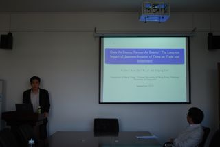 2012年秋季第九期Seminar系列讲座在邵逸夫科学馆401顺利举行。来自University of Hong Kong的Yi Che博士做了题目为“Once an Enemy, Forever an Enemy? The Long-run Impact of the Japanese Invasion of China from 1937 to 1945 on Trade and Investment”的学术报告。黄凯南教授主持了本次报告,黄少安院长及蒋金山、林晨、吴吉林、张进峰等老师参与了此次讲座。