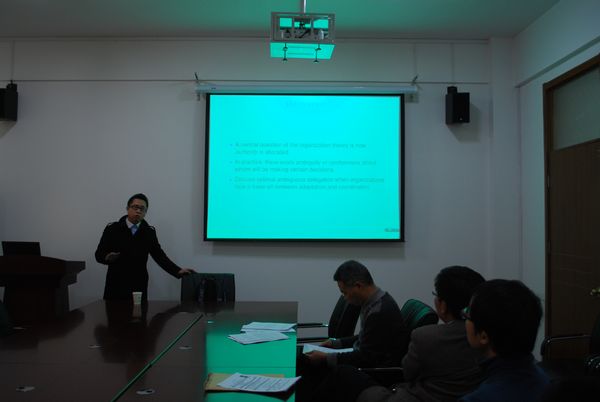 2013年第一期Seminar系列讲座在邵逸夫科学馆401顺利举行。来自北京大学经济学院的博士李四光做了题目为Governing adaptation and coordination: the role of ambiguous delegation的学术报告。黄凯南教授主持了本次报告,黄少安、李增刚、周洪涛、林晨、孙立新等老师参与了此次讲座。