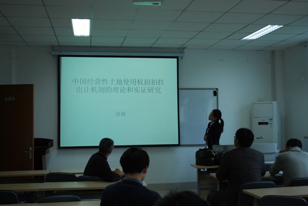 2013年第七期seminar(总第37期)系列讲座在邵逸夫科学馆513举行。来自上海交通大学的赵娅博士做了题目为《中国经营性土地使用权招拍挂出让机制的理论和实证研究》的学术分析报告。本次报告由黄凯南老师主持,黄少安院长、林晨、肖洪生、吴吉林、张进峰和蒋金山老师等参加了此次讲座。