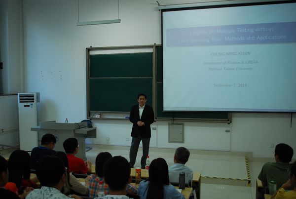2015年9月7日下午3时,台湾大学管中闵教授在知新楼C201为学院师生做了题为《Large-Scale Multiple Testing without Data Snooping Bias: Methods and Applications》的专题讲座。院长黄少安主持讲座,学院部分教师和硕、博研究生参与了讲座,还有众多其他学院学生慕名前来,报告会现场座无虚席。