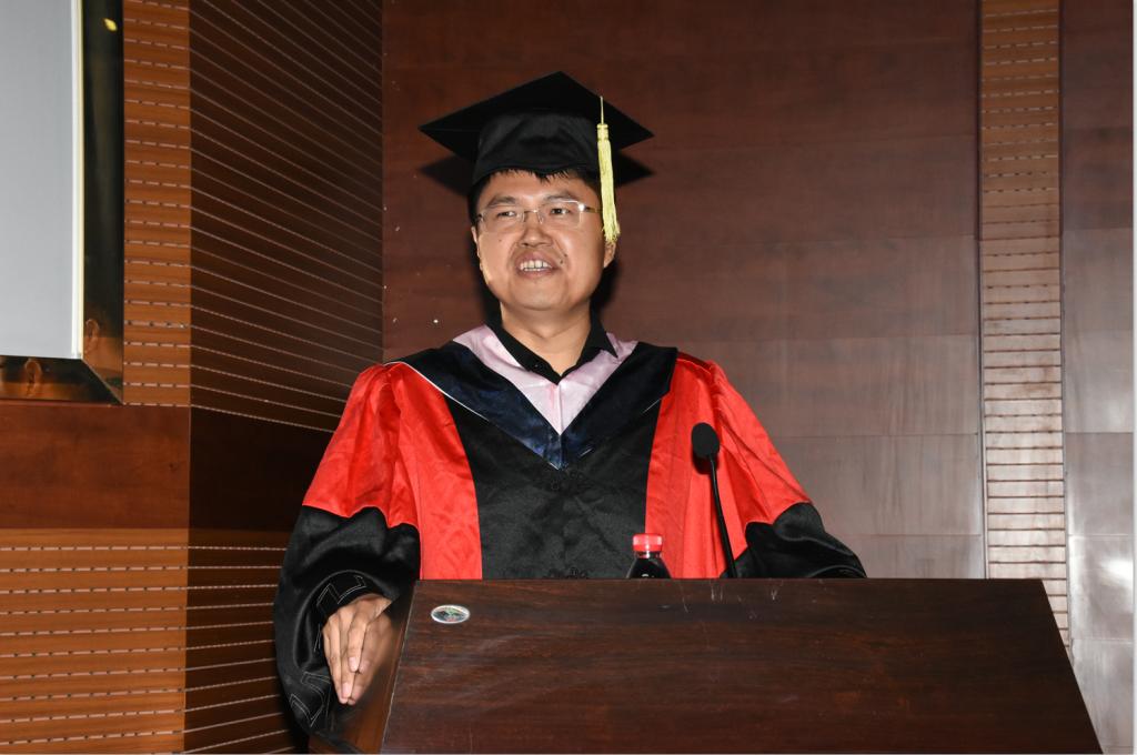 硕士毕业生代表姜岳洋、刘伟,博士毕业生代表梁超分别发表感言
