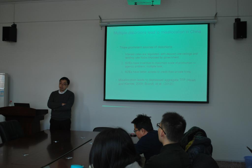 这次学术报告研究中国的利率市场化对资本配置的影响。许老师首先介绍了中美经济摩擦的不同,利率市场化相对利率管制而言是好事,但前提是经济中没有额外的摩擦。许老师指出由于中国经济存在很多摩擦,使得利率市场化不一定是好事。许老师对中国资本市场的摩擦做一些假设,如中国利率受管制,国有企业有想要最大化生产的动机,更关注规模而不是利润并且在金融市场上更容易贷到款,基于这些外生假设构建了中国经济的两部门的动态一般均衡模型。由于存在异质性企业和金融摩擦,利率市场化一方面会使得资源配置更有效;另一方面由于摩擦过多,国企因其关注产量而对利率不敏感,因而利率市场化会使得民企更加激进,资源更多的流向国企,造成资本配置的低效,误配越高,产出越低,进而影响到全要素生产率。许老师通过使用中国经济的事实来校准模型,分析了利率市场化改革后中国经济的总体生产率、资本配置效率和总体福利的动态变化。许老师的研究告诉我们任何经济政策一定要基于中国实际情况,不可照搬照抄,我们在做经济研究时,一定要立足中国国情,以严谨务实的学术态度,科学的研究方法才能做出好的研究。