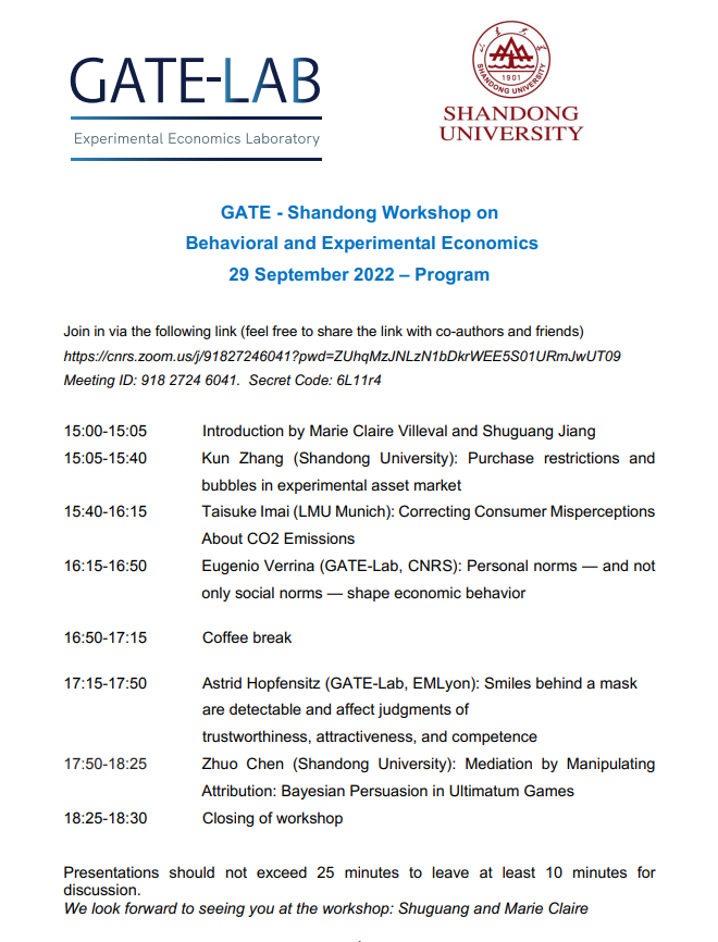 GATE - Shandong Workshop on Behavioral and Experimental Economics