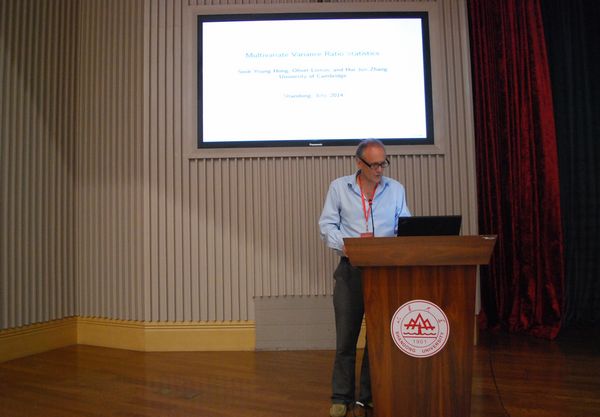 此次国际研讨会共有四个部分。开幕式结束后,进入第一部分,来自Cambridge University的Oliver Linton教授做了题为《Multivariate Variance Ratio Statistics》的演讲,来自北京大学的Yundong Tu助理教授做了题为《A Functional Cointegration Perspective on Quantity Theory of Money》的演讲。