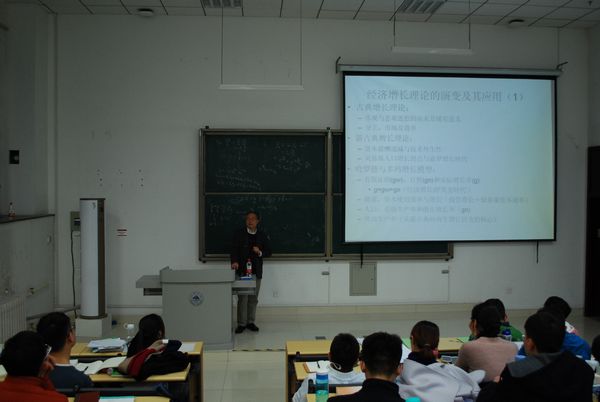 宋立刚教授的讲座吸引了众多同学的兴趣,现场座无虚席。讲座内容包括对中国经济增长实践的回顾,并在经济增长理论特别是古典增长理论,新古典增长理论和内生增长理论的框架下对中国增长模式及其转型的特点和面临的困难与挑战进行讨论和分析,并对新经济增长源泉与机制及其政策意义提出几点看法。在此基础上,讨论一下,经济增长的实践对现有经济增长理论所提出的挑战并预测一下经济增长理论可能会出现的新发展。宋教授主要从要素禀赋、技术创新、制度因素三方面阐述经济增长的动力和源泉。