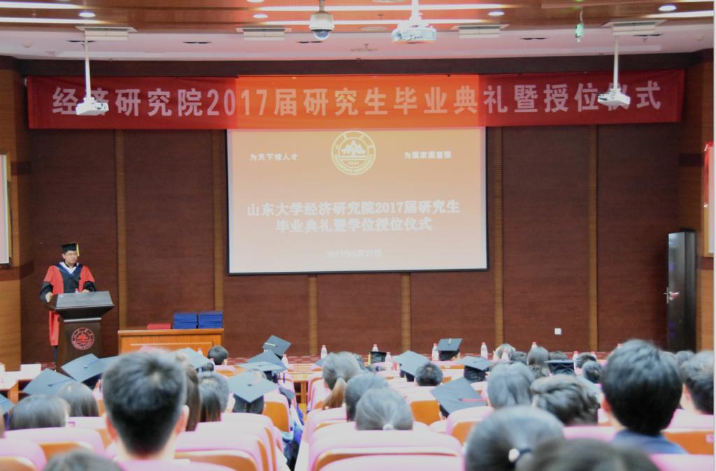 院长黄少安教授代表学院致辞,并为每一位毕业生颁发学位证书并合影留念。毕业典礼由学院院长助理孙涛副教授主持。