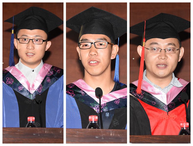 硕士毕业生代表姜岳洋、刘伟,博士毕业生代表梁超分别发表感言