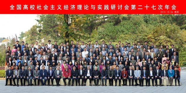 全国高校社会主义经济理论与实践研讨会第27次年会于2013年10月26日在贵州财经大学召开,与魏建老师合写的《财务困境、消费成瘾与国有文艺院团改革》一文入选,我作为代表参加了此次会议。此次会议收录的论文数和参会人数均达历史新高,200多人参会,卫兴华和吴宣恭两位老先生均出席了会议。会议包括四个主题:经济结构战略性调整的难点与对策、重点领域改革的思路与对策、共同富裕实现的机制与道路和中国经济学创新的方向与方法。会议定在十八届三中全会前召开,意义重大。